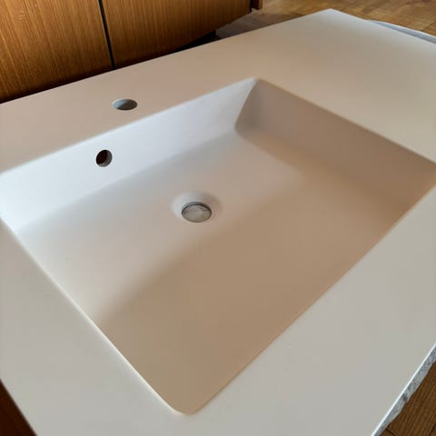 Bordplade til håndvask 1600x600 mm hvid betonlook med Franke SRX vask