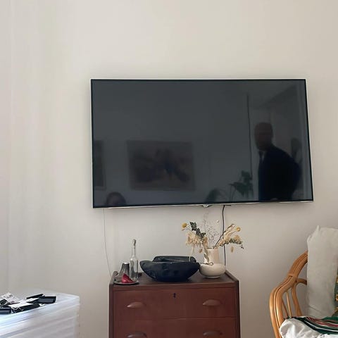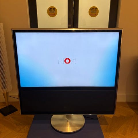 Bang & Olufsen BeoVision fladskærms-tv. 46 tommer. Tv’et står på gulvstand og har integreret højtaler under skærmen. Designet er kendetegnet ved en rektangulær skærm med sort front og sølvfarvet fod. Velegnet til brug i stue eller soveværelse som hoved- eller sekundært tv. Yderligere tekniske specifikationer som skærmstørrelse, opløsning og tilslutningsmuligheder afhænger af den konkrete BeoVision-model.