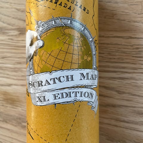 Et verdenskort hvor man kan skrabe de steder man har været, ligesom et skrabelod.