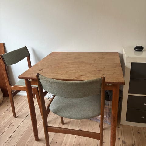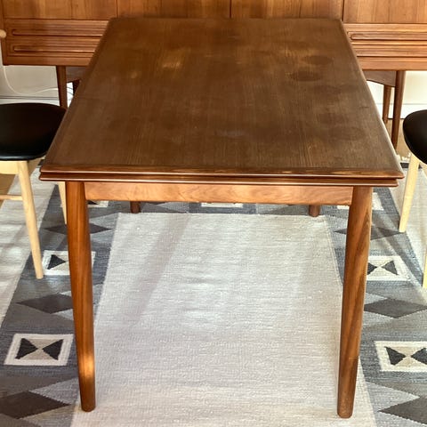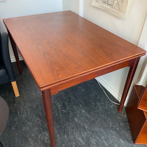 Spisebord med en udtræksplade i midten. Desværre mangler ende pladerne. Men fungere fint uden.