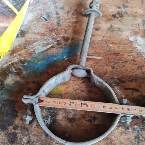 Kan afhentes gratis hvis man selv står for afmontering og transport. Indstøbt vinkelbeslag ved jorden medfølger, men skal afmonteres.