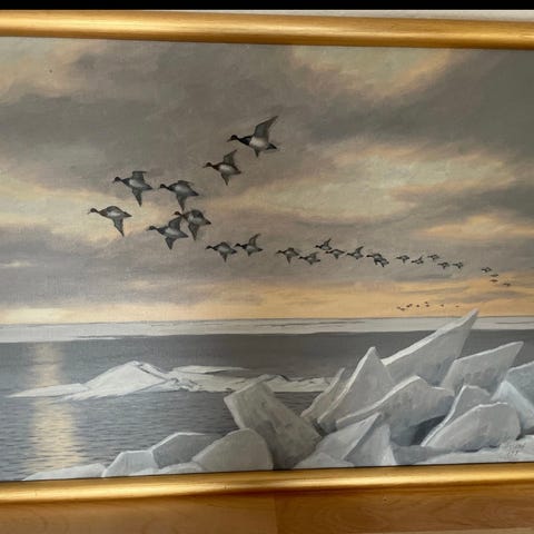 Oliemaleri A. Thuesen Vinterlandskab med fasaner