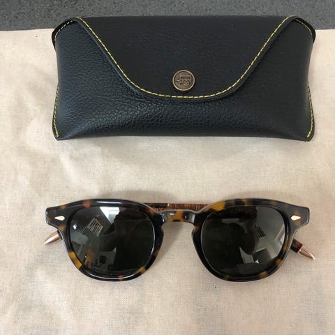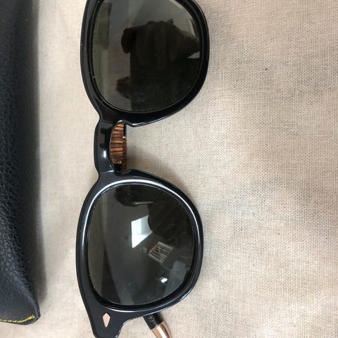 Moscot Lemtosh solbriller unisex med gennemsigtig stel og grønne glas. Stel i plast/acetat med rundet form. Leveres med originalt Moscot-etui og pudseklud, som vist på billederne. Velegnet som solbriller til daglig brug.