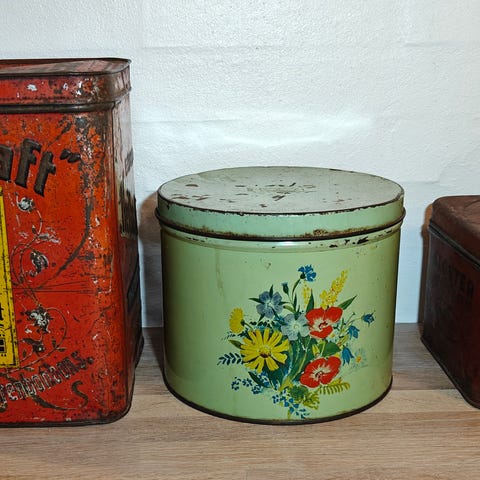 Gamle kagedåser, Metal/blik, 75 år gl.