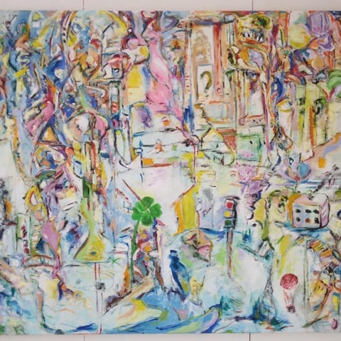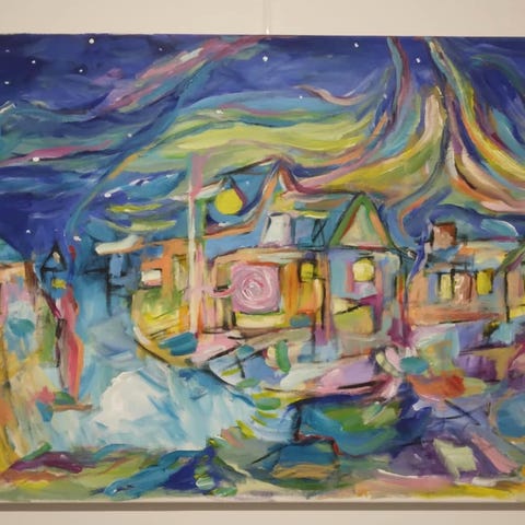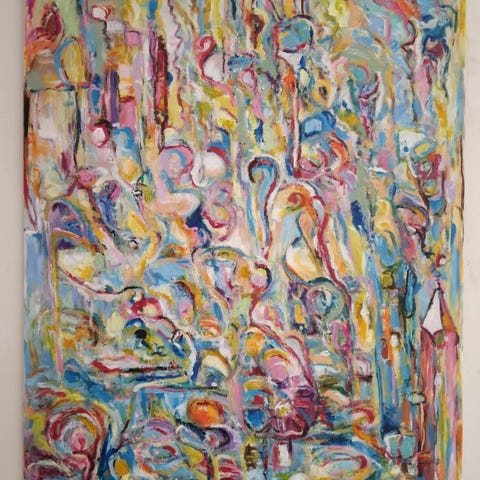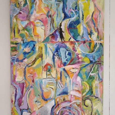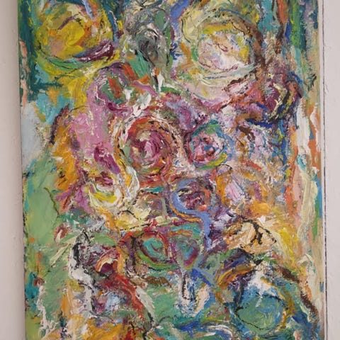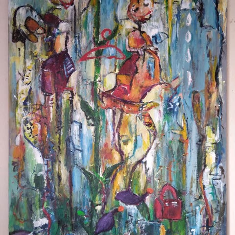 Akrylmaleri i 1 klasses materialer. Str.: 80 x 90 cm.