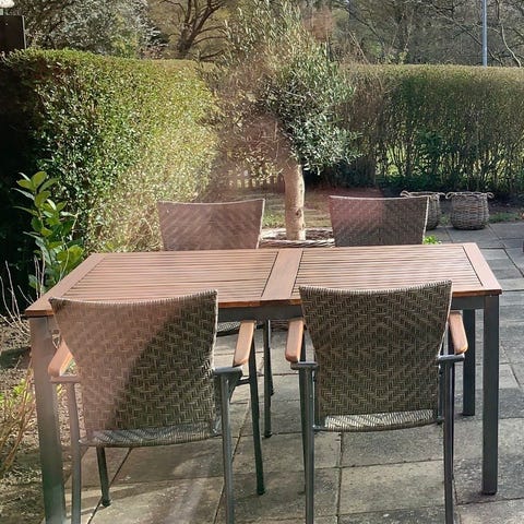 Havemøbelsæt, bord + 6 stole - kun lidt brugt. Trænger til en klud, men fejler intet.
