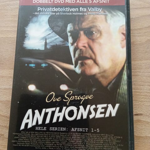 DR Anthonisen dvd boks med hele serien fordelt på 2 dvd-diske. Dansk tv-krimi med Ove Sprogøe i hovedrollen som privatdetektiv fra Valby. Boksen indeholder afsnit 1-5 med samlet spilletid på ca. 270 minutter. Dansk tale og produceret af DR.