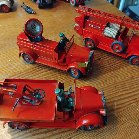 Fin stigebrandbil, ophænget bagpå til tromlen mangler i den ene side. Se billeder.
