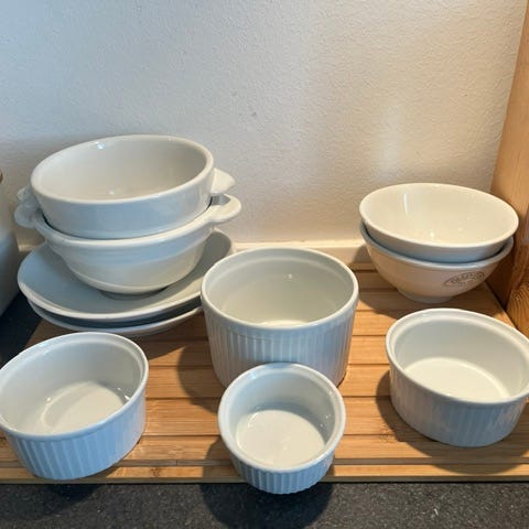 Pakke med 6 dele robust hvidt porcelæn – bl.a. Piet Hein og Søstrene Grene