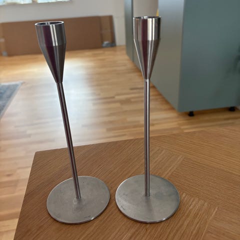 Piet Hein Jupiter Maxi og Venus Maxi lysestager i børstet stål.