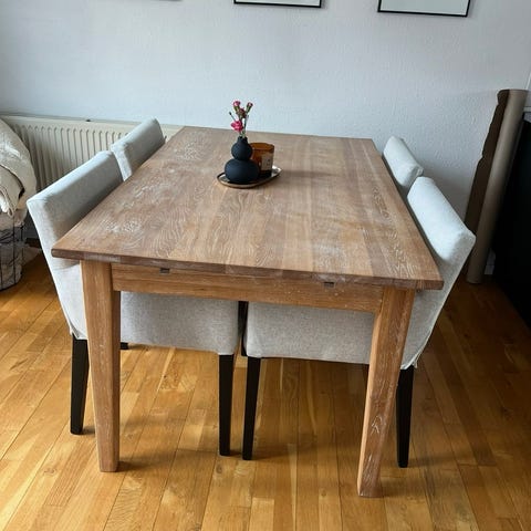 4 stk. spisebordsstole fra IKEA. Stolene står som nye, da de kun har været brugt 6-8 gange som reservestole.