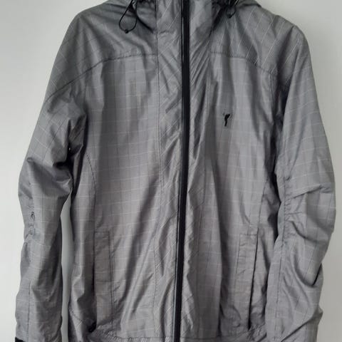 Str. M - Afhentes i Allerød - Jakke i blå med mørke kontrastpaneler i sider, ærmer og ryg. Forstykket og dele af ryggen er quiltet, hvilket giver ekstra isolering. Jakken har høj krave og gennemgående lynlås foran. Egnet som let overgangsjakke eller mellemlag. Materialet fremstår som en kombination af vævet yderstof og strækbart stof i sider og ærmer for bedre bevægelsesfrihed.