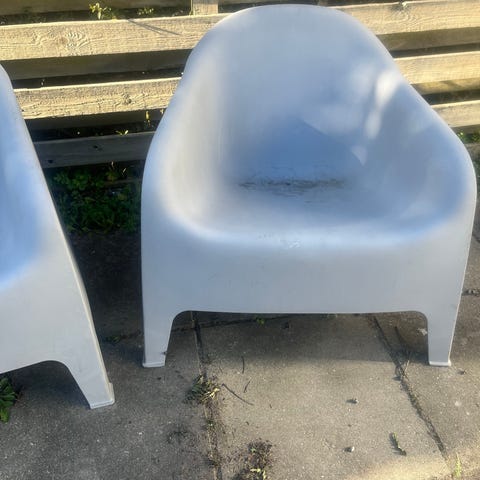 IKEA SKARPÖ loungestole i beige plast. Stolene har integrerede armlæn og helstøbt sæde og ryg i plast, som gør dem nemme at rengøre og vedligeholde. Solene kan stables for let vinteropbevaring. To stk for Kr. 250,- - eller alle fire kr. 400,- (nypris kr. 499,- pr. stk.)