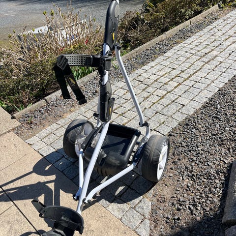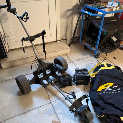 Model Fw5. Kører fint 18 huller. Lys i displayet er gået ud, men vognen kører uden problemer. Vognen skal afhentes.