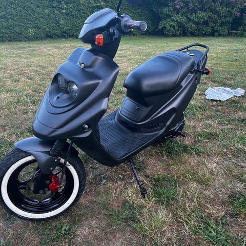 Scooteren står super skarpt, og er klargjort til sin nye ejer. Sidespejle og bagskærm kan medfølge.
