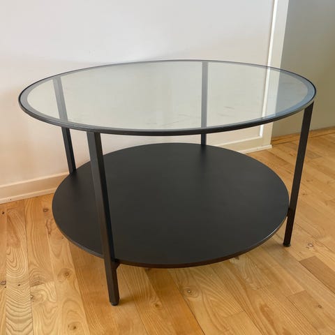 Glaspladen ligger løst så man kan anbringe noget dekorativt under.