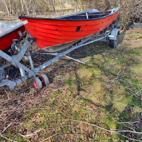 Uttern 450 jolle. En jolle i stærk kvalitet. Lavet så der kan komme mast på (følger ikke med). Der er rustfristål sænke svær, som gør den mere stabil når man f.eks. fisker. Jollen har lidt knubs her og der, men kun kosmetisk. Er bundmalet. Landevejstrailer med gode dæk følger med. Hidea 6 HK 4-takt motor følger med. Blev serviceret i efteråret 2025, er lige til at starte op.