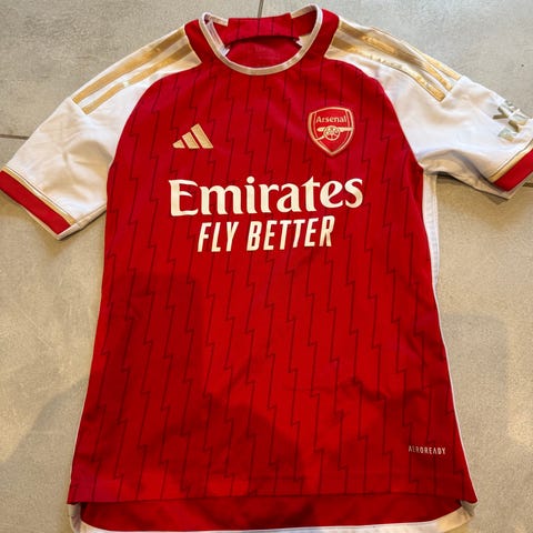 Adidas Arsenal fodboldsæt til børn i størrelse 68. Sættet består af rød/hvid trøje med Arsenal-logo og sponsortryk på brystet samt hvide shorts med Arsenal-logo og Adidas-logo. Elastik i linningen på shortsene for bedre pasform. Velegnet som fodbold- eller fritidssæt til små børn, der følger Arsenal.