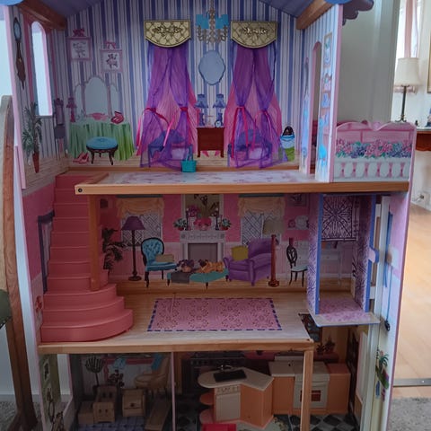 Barbiehus med tilbehør sælges. Skal afhentes i Hvidovre. 17 barbier, to hunde, 1 heste og en masse tøj og tilbehør plus bil følger med.