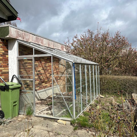 Drivhus i cedertræ. Kan afhentes gratis, hvis man selv tager det ned. Skal nedtages inden for den næste uge.