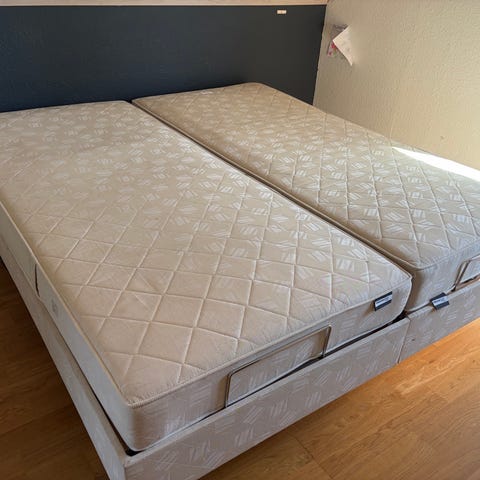 God og fuldt funktionel. Elevationsbunden, madrasserne, motoren og fjernbetjeningerne er i pæn og velholdt stand.