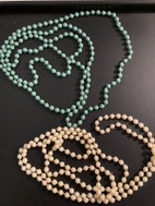 Halskæde, plast, 2 halskæder i plast, en råhvid og en blågrøn