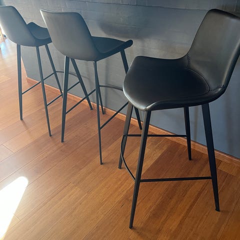 Barstol med høj ryg i imiteret læder.