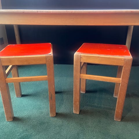 BRIO børnebord og stol i hvidt design. Sættet består af et mindre bord og en matchende stol i samme stil. Overflader og kanter er afrundede, så det egner sig til brug på børneværelset eller i legeområder. Velegnet til aktiviteter som tegning, leg og mindre måltider for børn i børnehavealderen. Mener det er BRIO. Oprindelige farve var rød/gul/grøn/ blå men vi har malet det