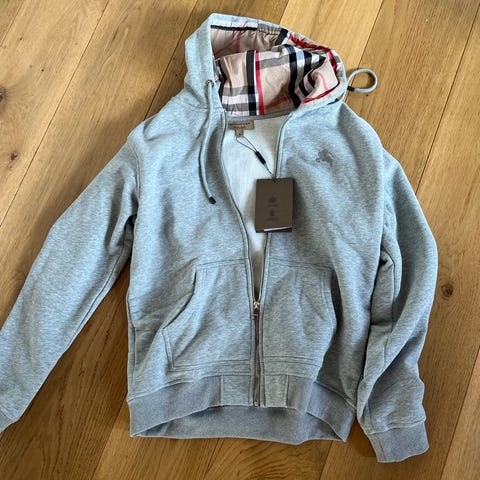 Burberry hoodie i størrelse M (unisex). Trøjen er hvid og har hætte. Enkelte steder diskrete brugsspor, men ingen fejl, tydelige mærker, huller eller lignende. I rigtig god stand. Sælges, da den er blevet for lille.
