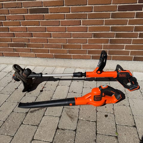 Black+Decker løvblæser og løvsuger med 36V 2,5Ah lithium-batteri. Enheden har både blæse- og sugefunktion samt opsamlingspose med Black+Decker-logo. Batteriet er aftageligt og har indikator for ladestatus. Velegnet til oprydning af blade og mindre haveaffald på terrasser, indkørsler og i haven.