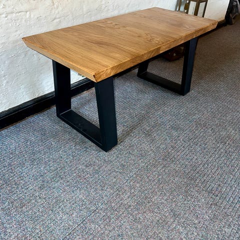 Bemærk at bordpladen er påbegyndt slibning men skal færdiggøres!