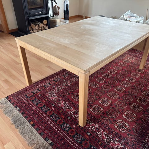 Skovby sofabord rigtig brugbart robust og med masser plads. Kan poleres ellers spraymales og bruges i mange år endnu. Byd gerne