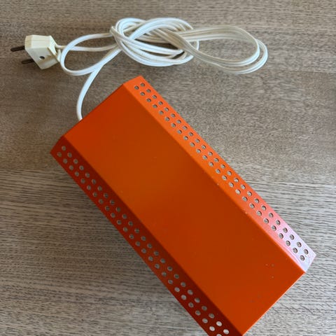 SOLGT Flot væg/sengelampe fra E. S. Horn i karakterisk orange og med original afbryder på ledningen. Længde i alt 17,5 cm. Foden måler 11x7 cm. 3 mtr. ledning.
