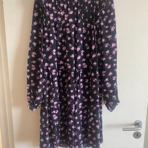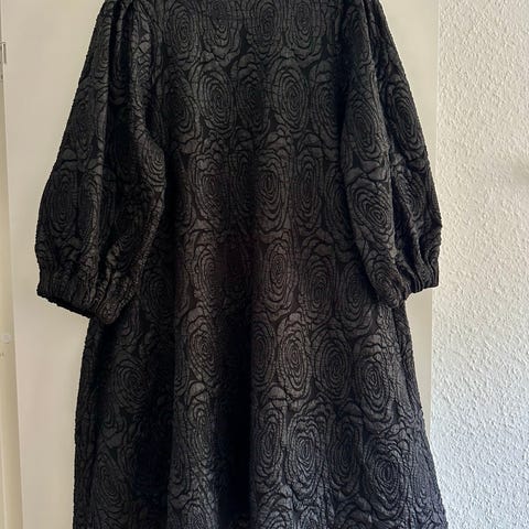 Kjole med glimmereffekt og bindebånd. Behagelig at have på.
