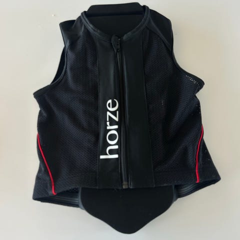 Horze BII D-00053 ridevest med rygskjold i sort. Vest til ridning med polstrede paneler foran og bagpå for stødabsorbering. Lynlås foran og justeringsmuligheder i siderne.
