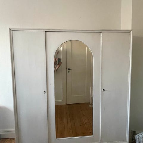 Meget smukt afsyret skab med facetslebet spejl. Alt intakt. Skabet kan skilles af.