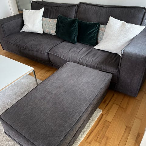 Lidt over 4 år gammel antracit grå 3 personers Sepia sofa inklusiv puf med opbevaring fra Bolia.