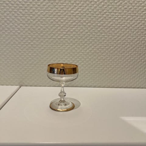 Likørglas med guldkant, 12 stk, heraf er guldkanten slidt på det ene glas - se sidste billede