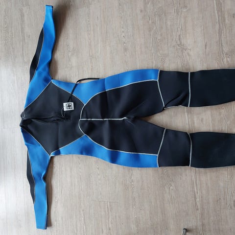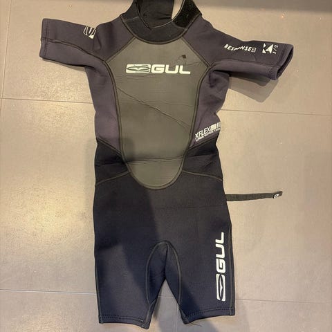 Typhoon våddragt - neopren i fuld længde med lange ærmer. Desværre uden størrelse men brugt til 9-10 årig. Måler 120 cm fra skulder til ankel.