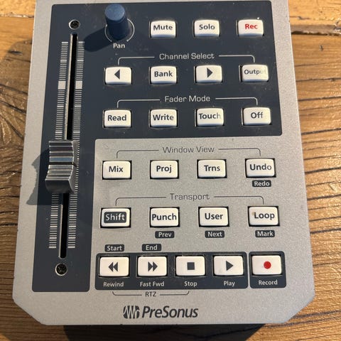 En kompakt kontrolenhed til musikproduktion og lydredigering. Enheden har flere drejeknapper, fadere, transportknapper og pads til styring af funktioner i digitale lydarbejdsstationer (DAW). Velegnet til brug i hjemmestudie og mindre produktionsmiljøer, hvor der ønskes fysisk kontrol over mix, spor.
