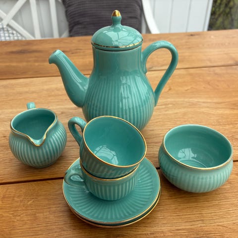 4 tekopper med underkopper (1 kop med lille skår)