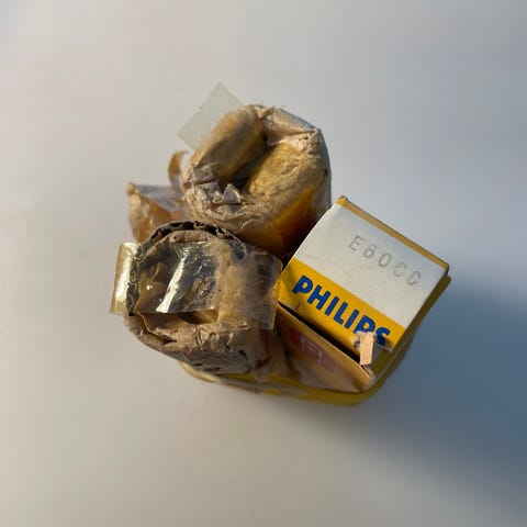 Philips elektronrør. Velegnet som reservedele til ældre lyd- og elektronikudstyr, hvor der anvendes rørteknologi. Flere typer og modeller kan indgå i kassen, egnet til eksempelvis reparation eller vedligeholdelse af vintage radio-, forstærker- eller måleudstyr, hvor Philips rør indgår i konstruktionen.