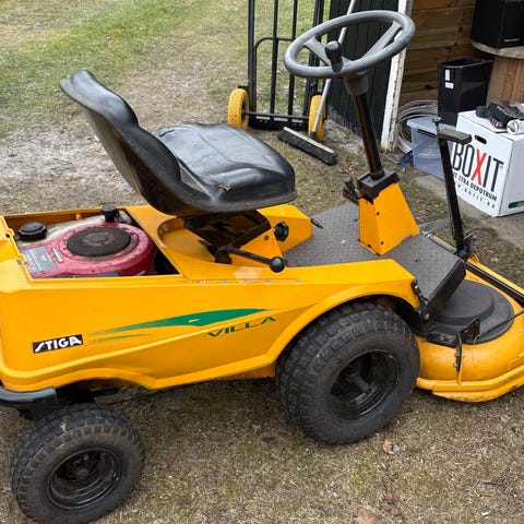 Stiga Villa Senator 12.5 Hk. Gode dæk,fejl på el.Manuel gear. Eltilslutning af klippebord.Til opbygning g eller reservedele.