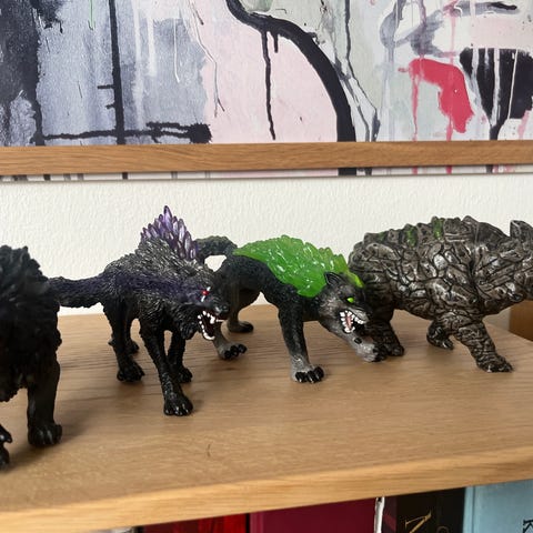 10 schleich-monstre samlet pris 800 kroner. God stand. Yeti mangler sin isøkse ellers er de komplette.