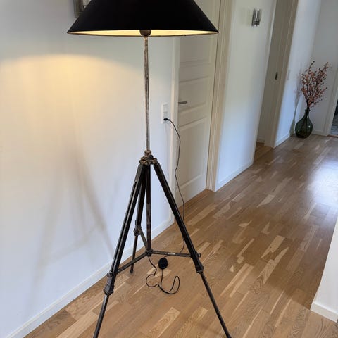 Tørrehjelm som er lavet til standerlampe. Vi har skiftet ledning og sat tænd/sluk kontakt på.