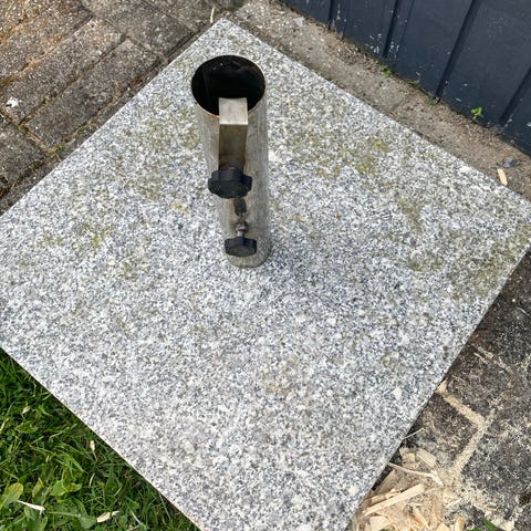 Denne massive parasolfod er tung og robust og holder din parasol, så den ikke vælter eller bliver blæst væk.