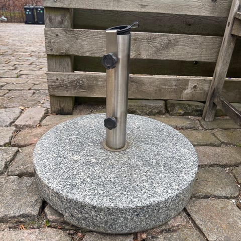 Denne parasolfod har en holdbar granitkonstruktion, der er meget stabil takket være dens høje vægt. Granitten har også et luksuriøst udseende og fornemmelse, som giver parasolfoden et sofistikeret look, der vil føje et strejf af elegance til dit udendørs område og komplementere dine luksuriøse havemøbler. Røret er lavet i rustfrit stål.
