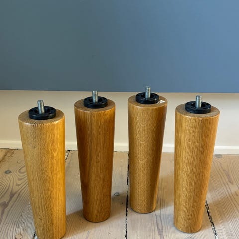 IKEA sengeben i hvid. Sengebenene er beregnet til montering på en sengestruktur og giver støtte og højde til sengen. De er udført i et fast materiale og har forborede huller til skruer for nem montering. Velegnet som reservedele eller udskiftning af eksisterende ben til en kompatibel IKEA seng. Senge ben H27 cm L 81 2 sæt 100 kr for et sæt