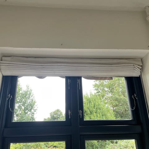 Sælger 5 stk. ens foldegardiner fra Garant i en klassisk, lys nuance, der passer perfekt ind i både moderne og nordiske hjem.