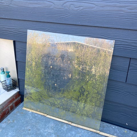 Glas drivhus med metalramme og glas på alle sider untaget bagside. Taget kan åbnes for nem adgang til indholdet. Egnet til dekoration, planter i potter eller udstilling af mindre genstande indendørs.